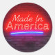 A neon sign glows with the words "Made In America" in bold red and blue against a brick wall