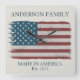 Celebrate your family and patriotism with this wall clock bearing a distressed American flag. Customise it with your desired family name and date of establishment. You can even change the phrase if you choose using the editing tool.