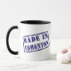Made In Edmonton! Are you from Edmonton, Canada? Do you have a friend or family member who loves Edmonton, Canada? If so, this "Made In..." mug is exactly the gift that you're looking for! The design features a weathered "Made in Edmonton" in navy stencil-like lettering surrounded by a navy rounded rectangle.