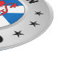 A design which features a faux silver ring, which has been designed to look like the outer and inner have been chamfered. In the centre of the ring, is the Scottish flag and the red lion rampant. Around the ring is the text "Made In Scotland" along with 6 decorative stars.