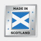 A design which features a faux silver square, which has been designed to look like the inner has been chamfered. In the centre of the square, is the Scottish flag. Around the square is the text "Made In Scotland" along with 6 decorative stars.