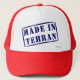 Made In Tehran! Are you from Tehran, Iran? Do you have a friend or family member who loves Tehran, Iran? If so, this "Made In..." hat is exactly the gift that you're looking for! The design features a weathered "Made in Tehran" in navy stencil-like lettering surrounded by a navy rounded rectangle.
