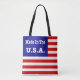 Tote Bag all over print style over the shoulder stylish fashion statement accessory printed with Made In The USA Red White And Blue American Flag design illustration by TheFabricSeal print on demand shop at Zazzle.com #ZazzleMade https://www.zazzle.com/store/thefabricseal