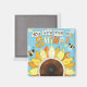 This 2" x 2" square inspirational magnet features a faux-applique sunflower design by artist/designer Becky Schultea. The design includes a large, bright sunflower with multi-patterned petals in shades of yellow and orange against a polka-dot turquoise sky. Faux coordinating buttons are scattered around the design for accent. Cute bumble bees buzz around the central feature of the design, the encouraging phrase "You Were Made To Shine". This magnet would add the perfect sunny touch to your fridge, home office, work office, or anywhere you need a sturdy, cute magnet. It would also make a wonderful little gift for anyone who would love a bright, uplifting, and practical magnet!