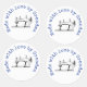 Iron on clothing label with "Made with Love by Grandma" customizable text in typewriter style blue tint font with vintage sewing machine illustration