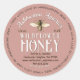 Elegant vintage design on rose-coloured label. Your apiary and product names are written in decorative fonts. Add Beekeeper’s Names, location, website, phone and honey net weight in ounces and grams. Optional promotional text "Made With Love By Hardworking Bees” around perimeter of label.