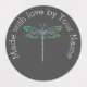 "Made with Love by [Insert Your Name Here]" customisable text in modern white font on grey background with colourful line art style dragonfly graphic. Perfect for your homemade gifts for family and friends, farmers market items, or small business production batches for things like handmade soaps/lotions etc.