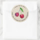 Add a sweet finishing touch to your handmade creations with this “Made With Love” cherry sticker. Featuring rich red cherries set against a soft taupe (kraft-inspired) background, this round design brings rustic charm and heirloom warmth to your packaging.