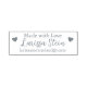A nice custom product with the words 'Made with Love', to personalise your hand-made products with love... your own name or brand in a elegant script font style, and a line to add e-mail or any other additional information about your business... two little love hearts on the sides