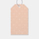 These handmade knitting gift tags are the perfect way to present your special gift for a loved one or your customers. A sweet and serene girl with black hair and light skin sits crossed legged with her hair in a bun and a floral headband. She sits contentedly knitting and purling away on a new project with her peachy pink ball of yarn and knitting needles. The back has a peachy pink polka dot heart pattern. Artwork © Chrissy H. Studios, LLC. All rights reserved.