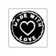 A rubber stamp with the words "made with love" and a heart. For gifts, hand made products, packaging, DIY, or just for fun. Enjoy