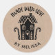 A personalised "made with love" sticker featuring a cute little gingerbread house with a heart and the words, made with love on a kraft coloured background. Personalise it by adding your own name. A pretty finishing touch for all of your homemade gifts. Designed for you by Blackberry Boulevard.