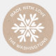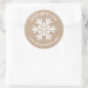 A kraft paper and white snowflake sticker with the words Made with love. Personalise it with your family name or business name. Fun for your homemade or handmade Christmas neighbour treats and gifts, or for your craft business. Designed for you by Blackberry Boulevard.