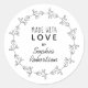 Made With Love Personalised Floral Wreath Product Label Round Sticker... A stylish white and black round sticker for your handmade gifts, home-baked foods, or homemade products for sale. A cute line art floral wreath borders the text which reads "Made with Love by" followed by your name in trendy script typography. You can easily change the name to your own on the personalisation template.