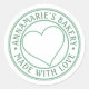 Personalise with your name or business name. Editable text reads "Made with Love." Perfect for homemade baked goods or your bakery's packaging. Heart with double round border.