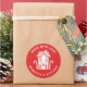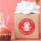 A personalised "made with love" sticker featuring a cute white gingerbread house with a heart and the words, made with love on a red coloured background. Personalise it by adding your own name. A pretty finishing touch for all of your homemade gifts. Designed for you by Blackberry Boulevard.