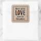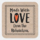 A made with love sticker on kraft coloured background. Personalise it with your name. Fun for using with handmade or homemade gifts. Designed for you by Blackberry Boulevard.