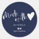 Made with love script minimalist white and navy blue design, with a cool and modern script brush font, add your social media. All the colour are editable.