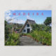 A beautiful view of a traditional Santana house on the island of Madeira printed on a postcard.