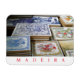 A beautiful view of souvenirs for sale on the island of Madeira printed on a souvenir fridge magnet.