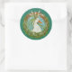 Madeline in spring wreath with teal background classic round sticker
