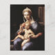 In this 16th century Italian depiction, the Virgin Mary and Jesus child are both gazing to their left. Jesus has his right hand raised.