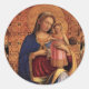 This is a beautiful 15th century depiction of the Madonna and child. The Virgin Mary holds a standing baby Jesus on her lap. Both have halos. A charming Madonna and child sticker.