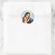 This gorgeous Madonna and Child depiction is one of our personal favourites. The beautiful Virgin Mary has a halo and is dressed in blue and red robes. The Christ child is seated on the Virgin Mother’s lap and has his arm around her. He has a little halo of his own. Behind them are blue skies and clouds. A truly special Madonna and child sticker.