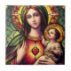This stunning ceramic tile artwork captures a deeply symbolic religious scene, featuring a figure holding a child, both illuminated with golden halos. The intricate stained glass design showcases vibrant hues—rich blues, deep reds, and glowing yellows—that enhance the sacred and timeless feel of the piece. The artistry reflects traditional craftsmanship, with finely outlined details creating a sense of depth and reverence.