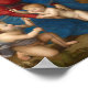 Madonna in the Meadow by Raphael is a masterful High Renaissance painting that depicts the Virgin Mary seated in a lush landscape, watching over the infant Christ and John the Baptist. Mary, dressed in a red gown with a blue mantle, exudes warmth and maternal grace as she gently holds Christ’s hand while he reaches towards John. The balanced composition, soft lighting, and harmonious colour palette reflect Raphael’s signature style, influenced by Leonardo da Vinci’s sfumato technique. The idyllic countryside in the background enhances the sense of peace and divine presence, making this artwork a timeless representation of love and faith.