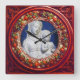 MADONNA WITH CHILD RED FLORAL RENAISSANCE CROWN SQUARE WALL CLOCK