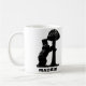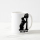 This white ceramic mug features a graphic of the statue Bear and the Madrono Tree, the symbol of Madrid in Sol Square, Puerta del Sol, Madrid, Spain.