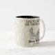 Madrid skyline couple — beige leaf background Two-Tone coffee mug