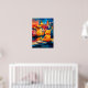 Warm Madrid teddy sunset artwork featuring a contemplative teddy bear silhouette overlooking Palacio Real and Almudena Cathedral at golden hour. Bold fauvist colors and structured geometric planes create vibrant wall art perfect for madrid lovers, nursery decor, and modern interiors.