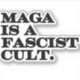 A bold and provocative T-shirt design featuring the statement "Maga is a Fascist Cult" in striking, attention-grabbing typography.