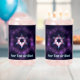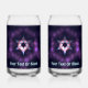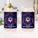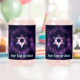 A foil-like, multi-coloured, fractal Star of David on a dark blue background. Customise by adding your own text.