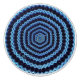 A metallic, blue 3D fractal Magen David (Star of David) surrounded by concentric rings of opposing, metallic chevrons (or diamonds) and superimposed on a starry background.