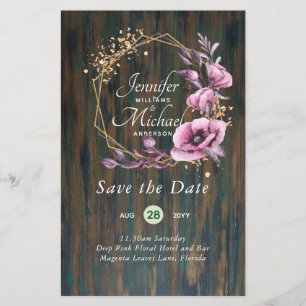 Mauve and Burgundy Floral Wedding Save the Date Invitation