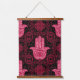 Magenta and Black Hamsa Hand Good Fortune Hanging Tapestry