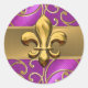 Magenta and Gold Filigree Swirls Fleur de Lis Classic Round Sticker
