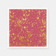 Paper party napkins with gold leaves pattern on trendy Magenta background.