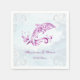 Personalise a unique napkin for your wedding reception or bridal shower guests with a set of Magenta Dolphin Bridal Shower Napkins. Napkin design features a metallic styled dolphin against a muted ocean waves background adorned with elegant scrolls. Personalise with the groom and bride's names along with the wedding date. Additional wedding stationery available with this design as well.