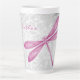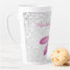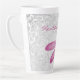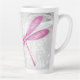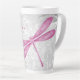 Enjoy your latte or morning coffee with a Magenta Dragonfly Personalised Latte Mug. Mug design features a colourful dragonfly, a soft white leafy vine against a light grey grunge damask background with an area to personalise with your name. Additional gift items available with this design as well as a variety of colours.