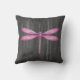 Add an elegant touch to your living or bedrooms with a Magenta Dragonfly Rustic Personalised Throw Pillow. Pillow design features a vibrant dragonfly adorned with delicate foliage against a dark grey rustic wooden background. Additional gift items available with this design as well.