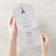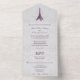 Magenta Eiffel Tower Damask All in One Wedding All In One Invitation