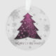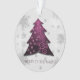 Decorate your tree this holiday season with a Magenta Festive Christmas Tree Ornament. Ornament design features a vibrant and festive Christmas tree adorned with falling grey and white snowflakes with a holiday greeting. Additional gift and holiday items available with this design as well.