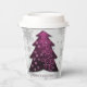 Sip your favourite Christmas time beverages with a festive set Magenta Festive Christmas Tree Paper Cups. Paper cup design features a vibrant and festive Christmas tree adorned with falling grey and white snowflakes with a holiday greeting. Additional gift and holiday items available with this design as well.