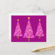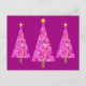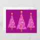 Postcard with a modern take on a classic Christmas tree motif, magenta floral with a deep magenta background