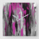 Magenta Grey Black and White Abstract Square Wall Clock