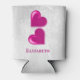 Keep your beverages cold in the summertime with a Magenta Hearts Personalised Can Cooler. Cooler design features a a pair of hearts, a soft white leafy vine against a light grey grunge background with an area to personalise with your name. Additional gift items available with this design as well as a variety of colours.
